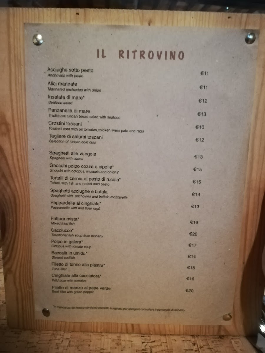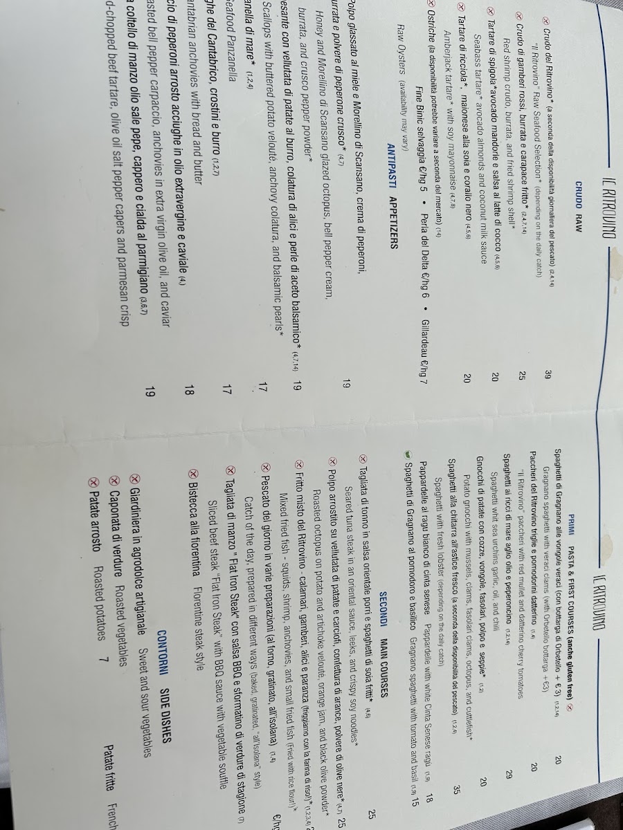 Introducing the menu of Il Ritrovino, a shining gem nestled in the heart of Castiglione della Pescaia. Renowned for its exquisite seafood, this restaurant masterfully blends traditional Italian cuisine with fresh, high-quality ingredients. Customers rave about delightful offerings like the seafood panzanella—a heartwarming medley of tender seafood—and the innovative seafood carbonara, a dish that surprises and delights the palate.